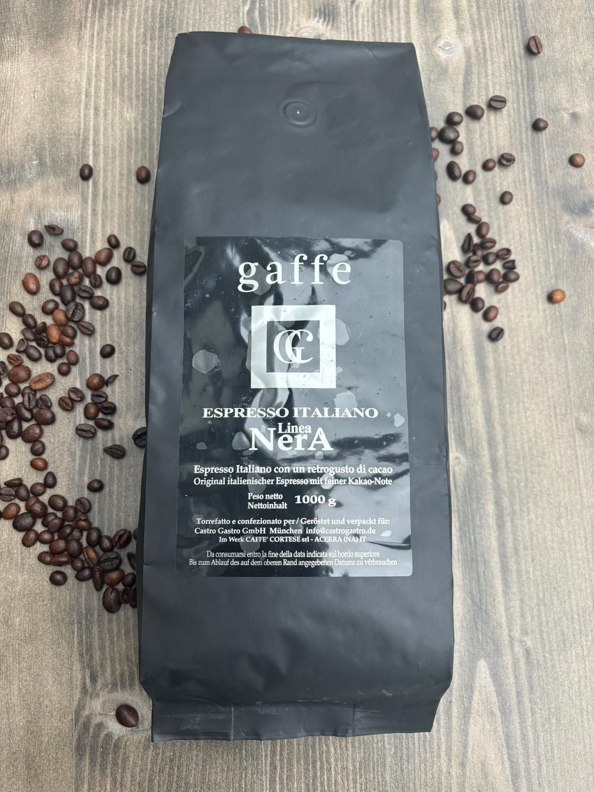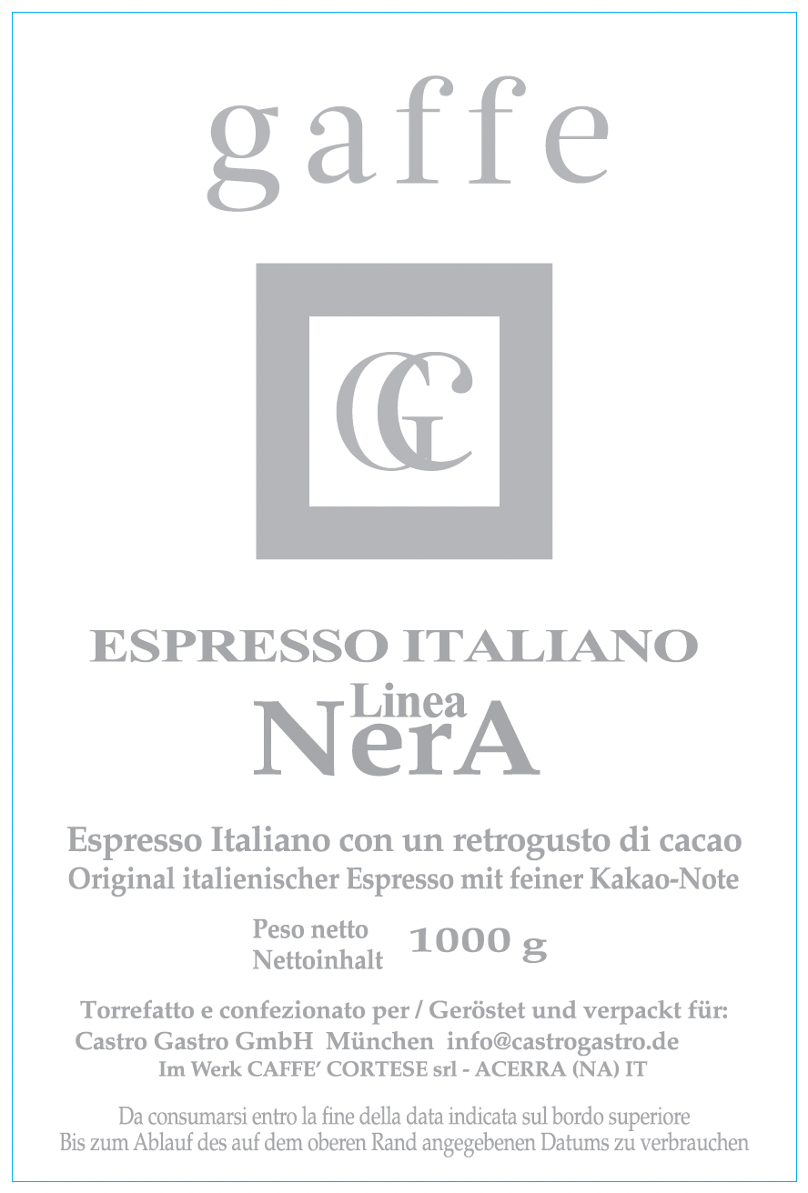 Unsere Mischung "Linea Nera" ist ein vollmundiger, original italienischer Espresso mit intensivem Aroma und einer feinen Kakao-Note. Holen Sie sich den Duft Italiens nach Hause.